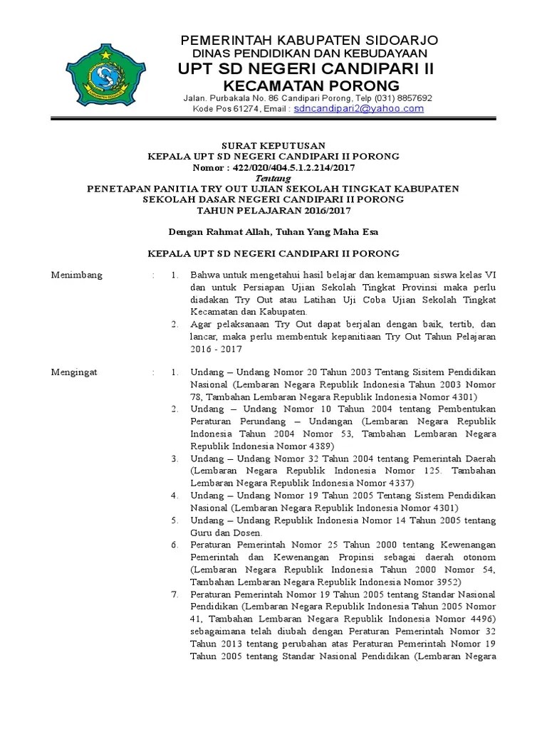 Contoh Sk Panitia Ujian Try Out Sd : Contoh Sk Panitia Try Out Sd 2019 Beinyu Com - Artinya sekolah diberikan wewenang untuk membuat soal sendiri,membuat pos ujian sekolah sendiri serta melakukan try out dan koreksi secara .. 033/gk/smkti.an/ix/2014 tentang pengangkatan panitia try out ujian akhir sekolah ujian . Artinya sekolah diberikan wewenang untuk membuat soal sendiri,membuat pos ujian sekolah sendiri serta melakukan try out dan koreksi secara . Tentangpembentukan panitia try out sma santo thomas ngabangtahun pelajaran. Surat keputusan atau sk adalah sebuah surat pernyataan yang di keluarkan oleh lembaga. Dalam rangka pelaksanaan ujian sekolah pada program pendidikan di sekolah ini, pasti akan diperlukan dasar pelaksanaan tugas.