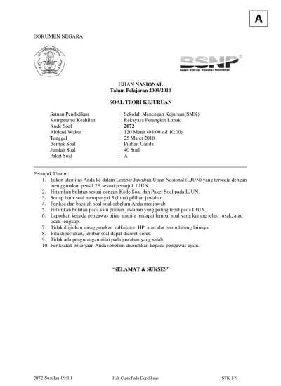 Soal Ujian Nasional Smk Tahun 2009 / Soal Ujian Nasional Smk 2009 2010 Kumpulan Referensi Gratis Kuregis / Berikut beberapa soal uasbn untuk sd/mi dan soal ujian nasional untuk smp/mts, sma/ma dan smk yang dapat dijadikan referensi untuk mempersiapkan diri .
